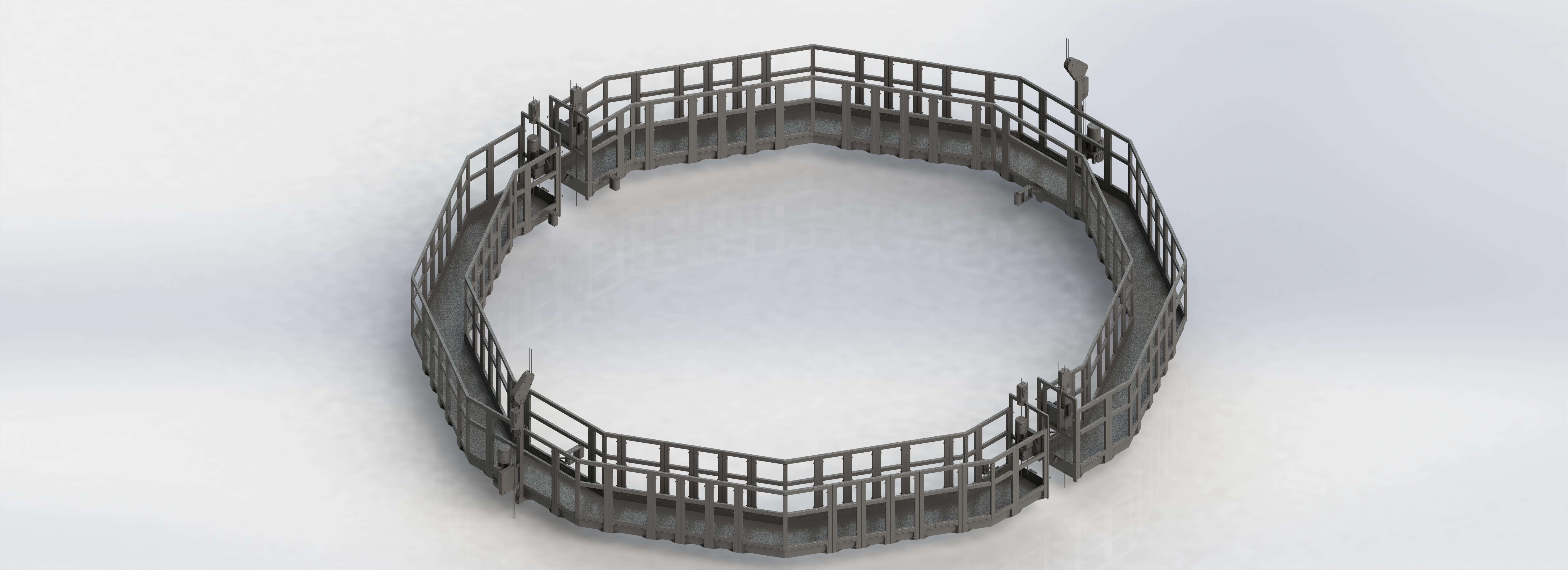 混塔维修平台由两个半平台(C 型栏体)组成,其中半平台可单独控制使用,1个半平台可承载4人,灵活性更高。混塔维修平台主要由吊点组件、栏体、提升机、安全锁、电器控制系统、工作钢丝绳、安全钢丝绳等组成。