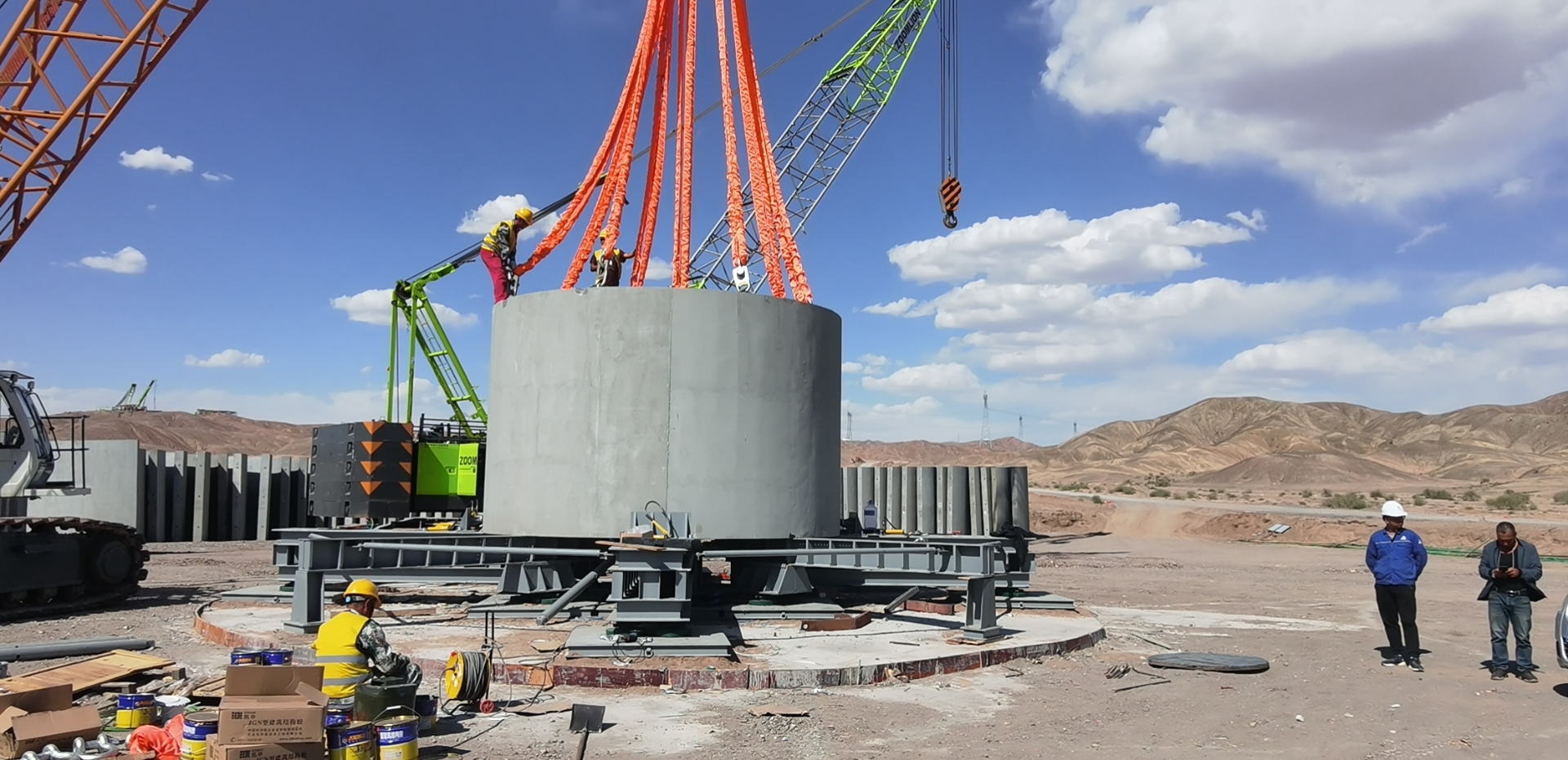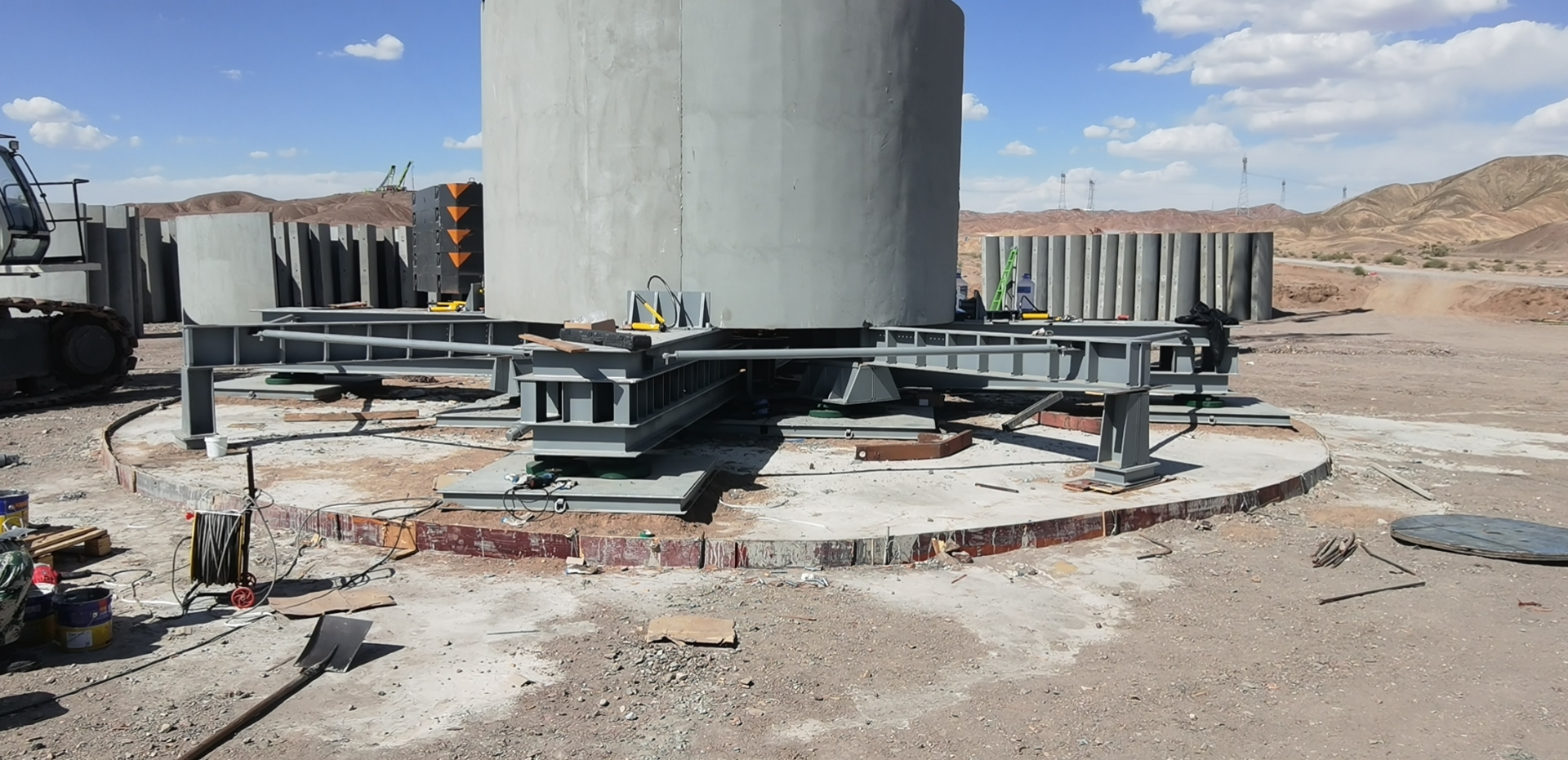 拼接平台应用于混凝土塔筒的环片拼装作业,混凝土塔段由四片环片组成,吊装前需拼装成一段整环,平台能够提供工作水平面并满足不同直径段的管片拼装要求,并且根据最大管片重量进行强度、刚度、抗弯计算,转运方便,造价合理。
